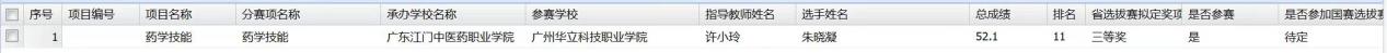 圖2 藥學(xué)技能參賽選手及成績