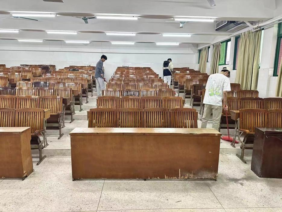 志愿者們分工合作,在活動(dòng)負(fù)責(zé)人的帶領(lǐng)下有序進(jìn)行。他們按照事先分好的小組,投入到各個(gè)教室的清掃工作中。他們細(xì)致入微地清理每一個(gè)角落,確保教室的地面、桌椅、黑板等都煥然一新。