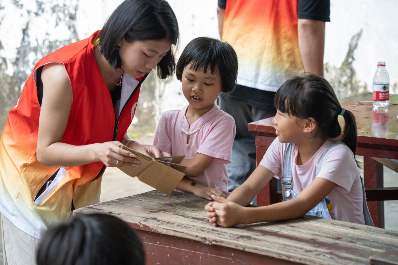 圖為 突擊隊(duì)員們帶領(lǐng)小朋友們完成植物拓印活動(dòng)