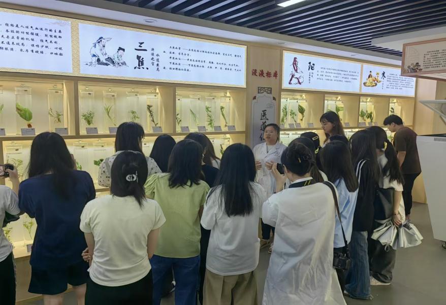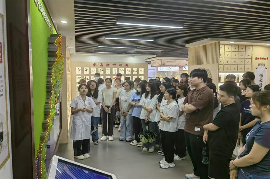 走進(jìn)標(biāo)本館,里面陳列著各式各樣的中藥標(biāo)本,從常見(jiàn)的金銀花、枸杞,到珍稀的鹿茸,每一份標(biāo)本都標(biāo)注著詳細(xì)的名稱、性味歸經(jīng)及功效主治。隨后,新生們跟隨講解員的步伐,來(lái)到互動(dòng)體驗(yàn)區(qū)。在這里,他們可以親手觸摸模擬的中藥材,通過(guò)AR技術(shù)直觀感受藥材的生長(zhǎng)環(huán)境及炮制過(guò)程。