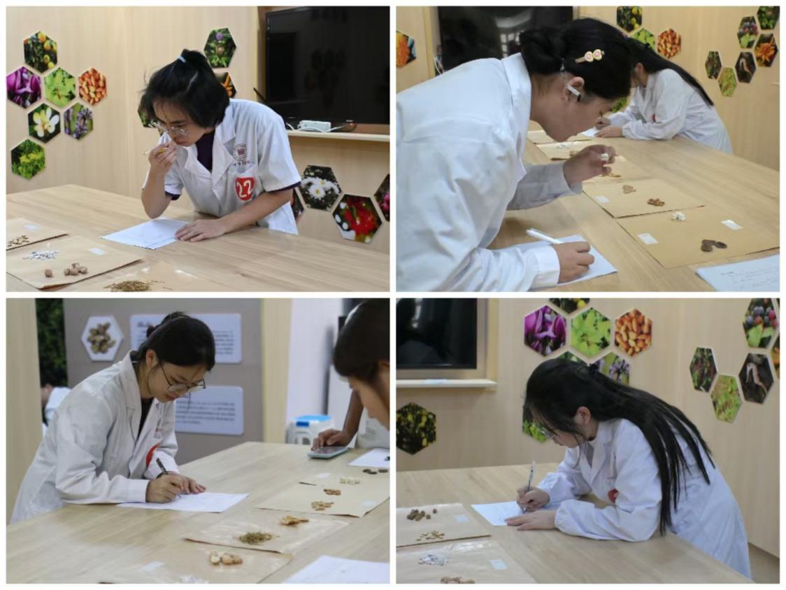 比賽時,同學們面對各類中藥材標本,通過觀察其外形、色澤、氣味等特征,結(jié)合所學理論知識,判斷藥材的名稱、產(chǎn)地、功效等信息。整個比賽過程緊張有序,同學們?nèi)褙炞?、冷靜應對,展示了扎實的專業(yè)知識。評委老師們嚴格按照評分標準打分,確保比賽結(jié)果公平公正。