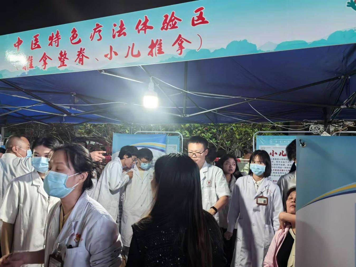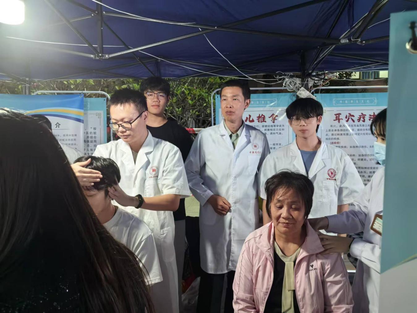 針推部指導教師馬本義指導學生對前來體驗的群眾進行推拿操作