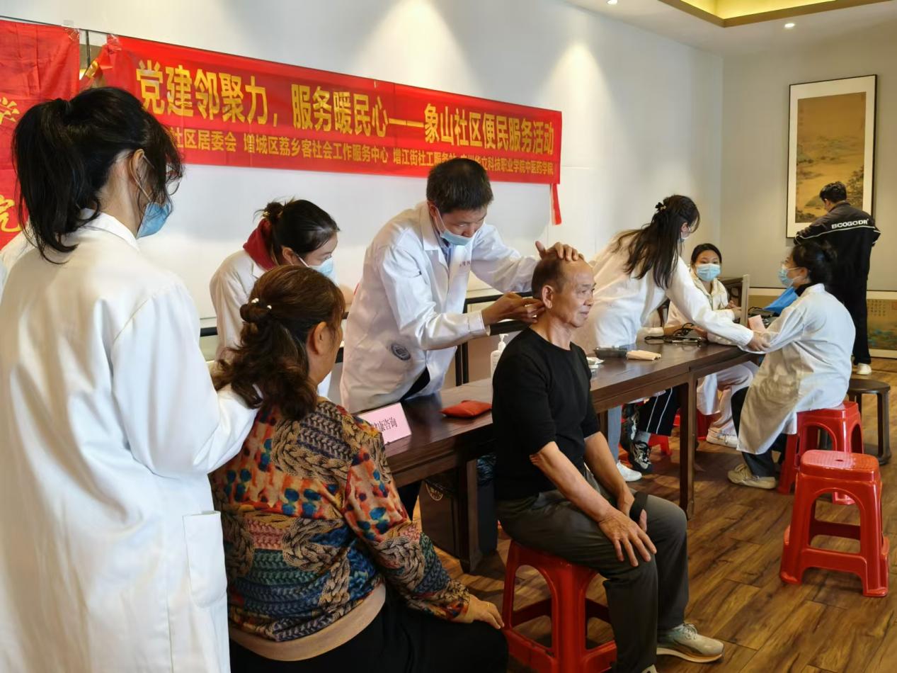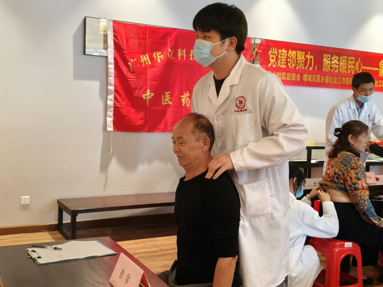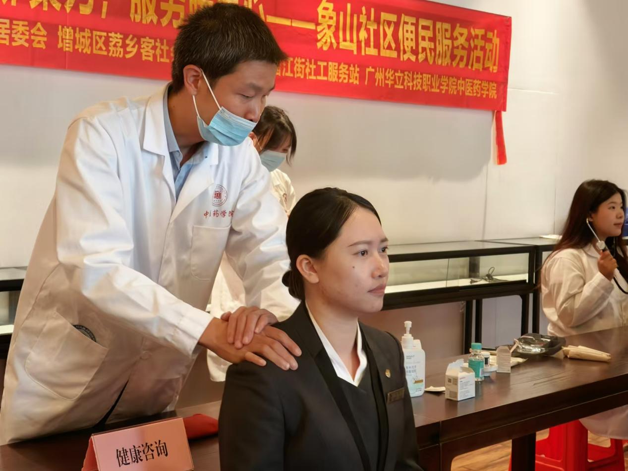 為進(jìn)一步弘揚(yáng)中醫(yī)健康文化、普及中醫(yī)藥健康養(yǎng)生知識,11月22日上午,在增江街社工站的組織下,由學(xué)院潘菽弢博士、團(tuán)委書記謝梓婷老師帶隊(duì),入黨積極分子及學(xué)生干部組成的中醫(yī)理療服務(wù)隊(duì)前往廣州院子與MG私人定制共同開展“黨建鄰聚力,服務(wù)暖人心”象山社區(qū)便民服務(wù)活動。