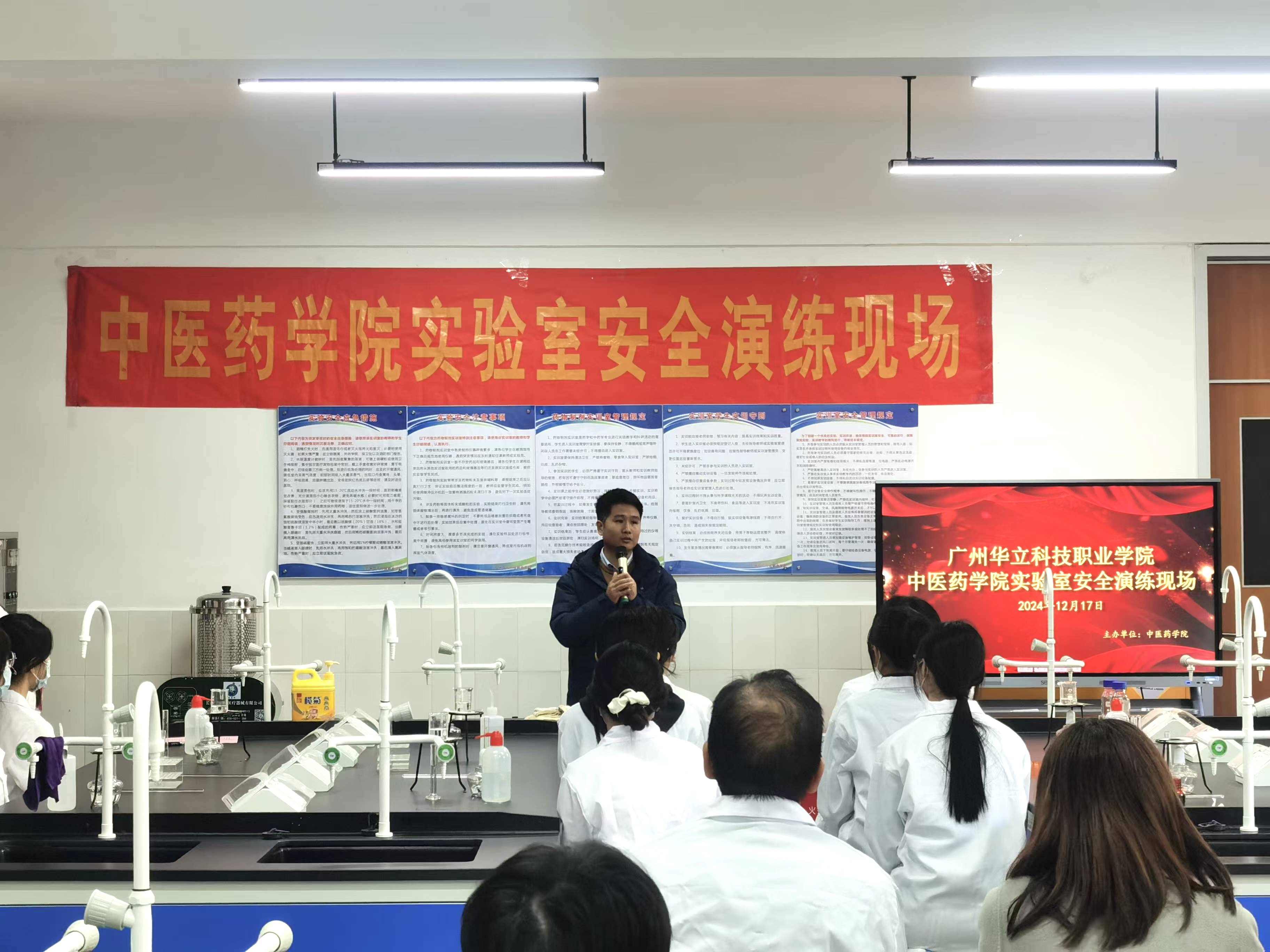 為進一步加強實驗室安全管理,提高師生應對實驗室突發(fā)安全事故的能力,2024年12月17日,我院在西二101藥物制劑實訓室開展了2024-2025學年第二學期實驗室安全演練活動。校長助理葉春桃、實訓中心主任張磊、副主任陳永聰,中醫(yī)藥學院院長王暉、副院長張志勇以及中醫(yī)藥學院的師生代表等出席了活動。
