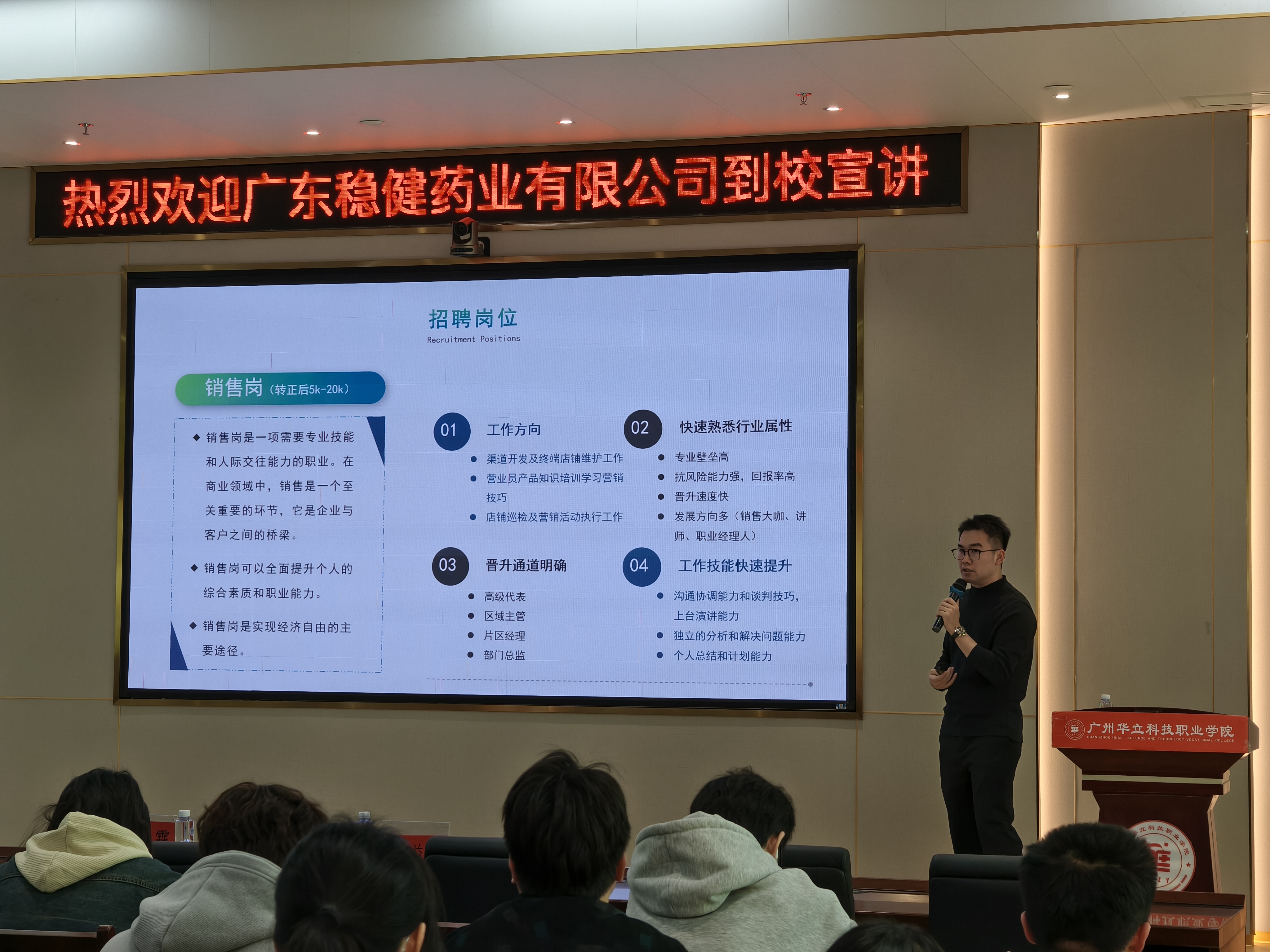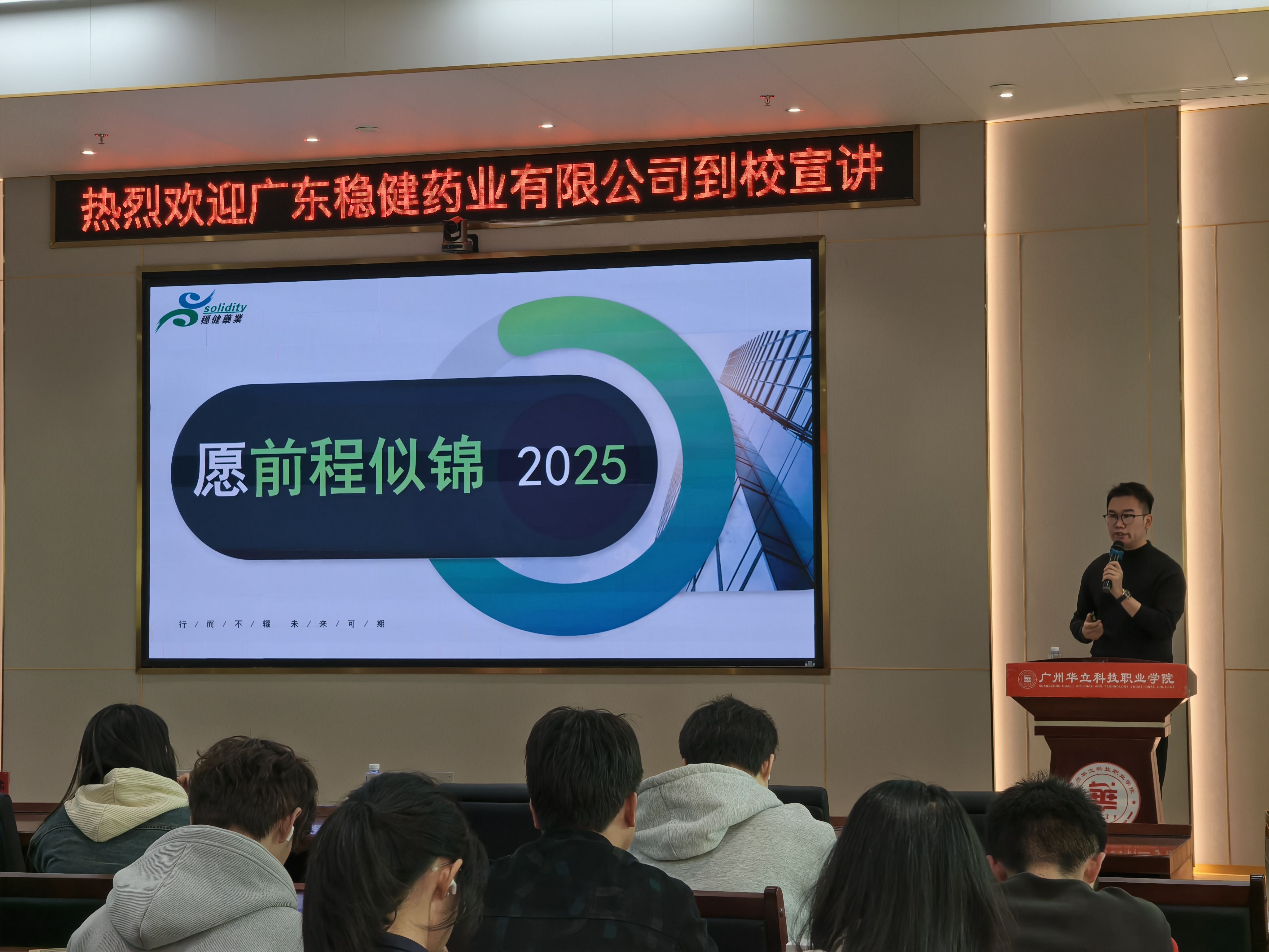 宣講會(huì)上,何忠霖總監(jiān)以視頻、案例結(jié)合的方式,介紹了公司發(fā)展歷程、核心業(yè)務(wù)及企業(yè)理念,并重點(diǎn)解讀2025年校園招聘計(jì)劃,涵蓋研發(fā)、生產(chǎn)、質(zhì)量管理等10余個(gè)崗位。會(huì)上分享醫(yī)藥行業(yè)趨勢,鼓勵(lì)學(xué)生夯實(shí)專業(yè)基礎(chǔ)。