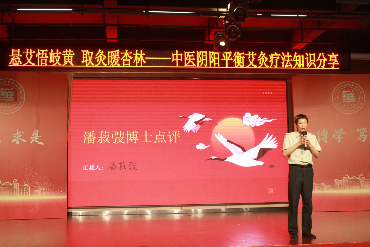 緊接著,石幸樂同學(xué)為大家分享中醫(yī)陰陽平衡艾灸療法知識。他雖為學(xué)生,卻已有十多年的行醫(yī)經(jīng)驗,在艾灸療法方面頗有心得。石幸樂同學(xué)結(jié)合自己救治過的豐富病人案例,由淺入深地講解陰陽平衡艾灸療法的理論基礎(chǔ);從中醫(yī)經(jīng)典里陰陽學(xué)說的溯源,到艾灸如何通過溫?zé)岽碳ぱㄎ粊碚{(diào)節(jié)人體陰陽,學(xué)生們通過他的分享系統(tǒng)地理解了這一傳統(tǒng)療法的內(nèi)在邏輯。為了讓同學(xué)們有更為直觀的感受,他列舉了眾多我們經(jīng)常遇到的疾病作為案例,詳細(xì)講解了艾灸的穴位選取、施灸手法和療程安排;并告訴同學(xué)們要學(xué)會甄別網(wǎng)絡(luò)上魚龍混雜的信息,認(rèn)認(rèn)真真讀經(jīng)典、悟原理,培養(yǎng)良好的中醫(yī)思維。