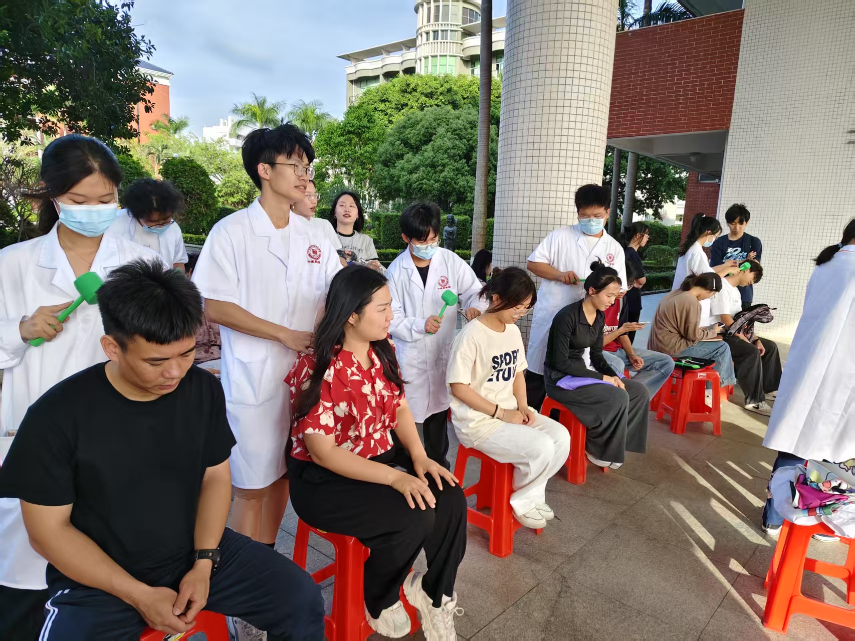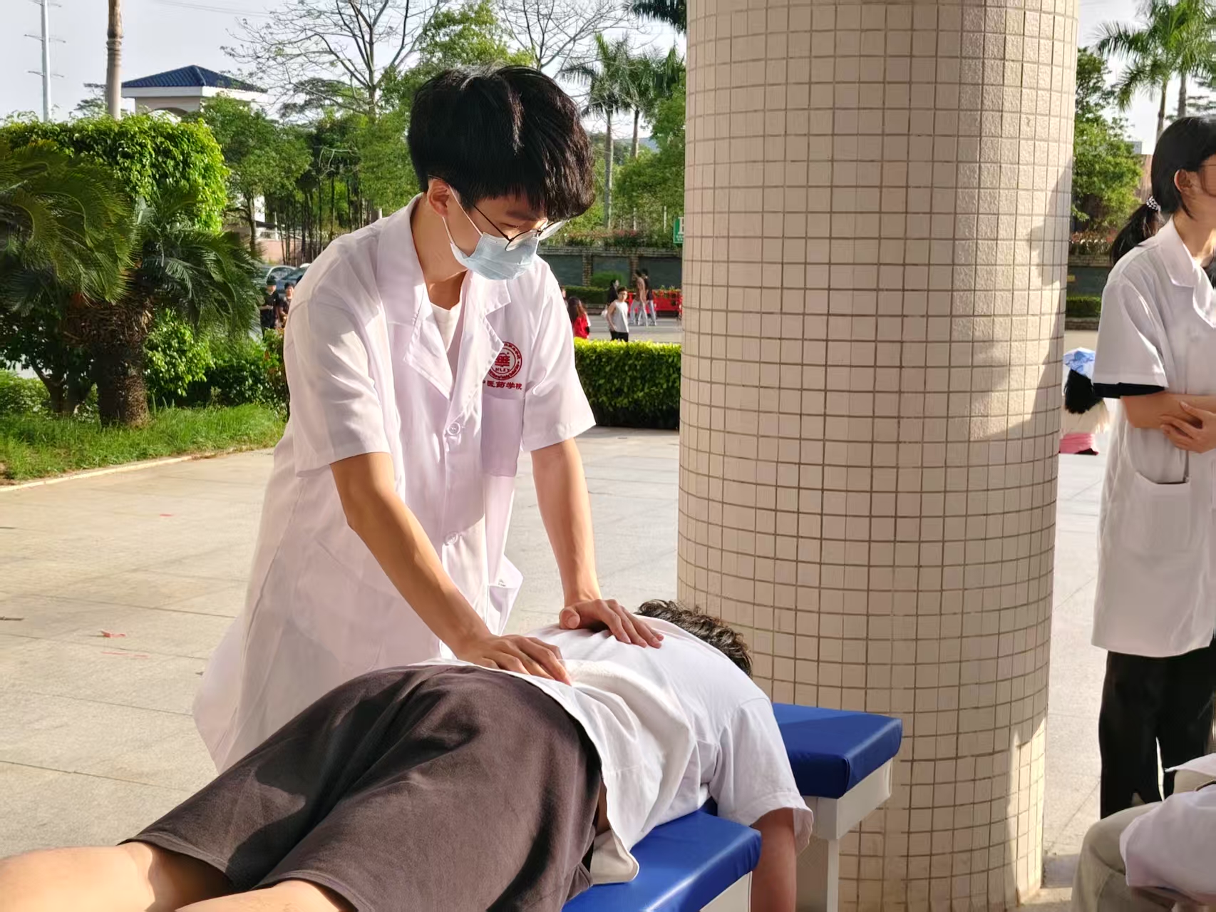 “以氣預(yù)“手”,推拿正當(dāng)時(shí)”。中醫(yī)推拿區(qū),經(jīng)過(guò)專業(yè)培訓(xùn)的志愿者運(yùn)用揉、按、推、拿等手法,為肩頸疲勞、肌肉酸痛的師生進(jìn)行調(diào)理。志愿者邊操作邊科普中醫(yī)經(jīng)絡(luò)知識(shí),通過(guò)穴位刺激幫助眾多師生疏通氣血,贏得了廣泛好評(píng)。