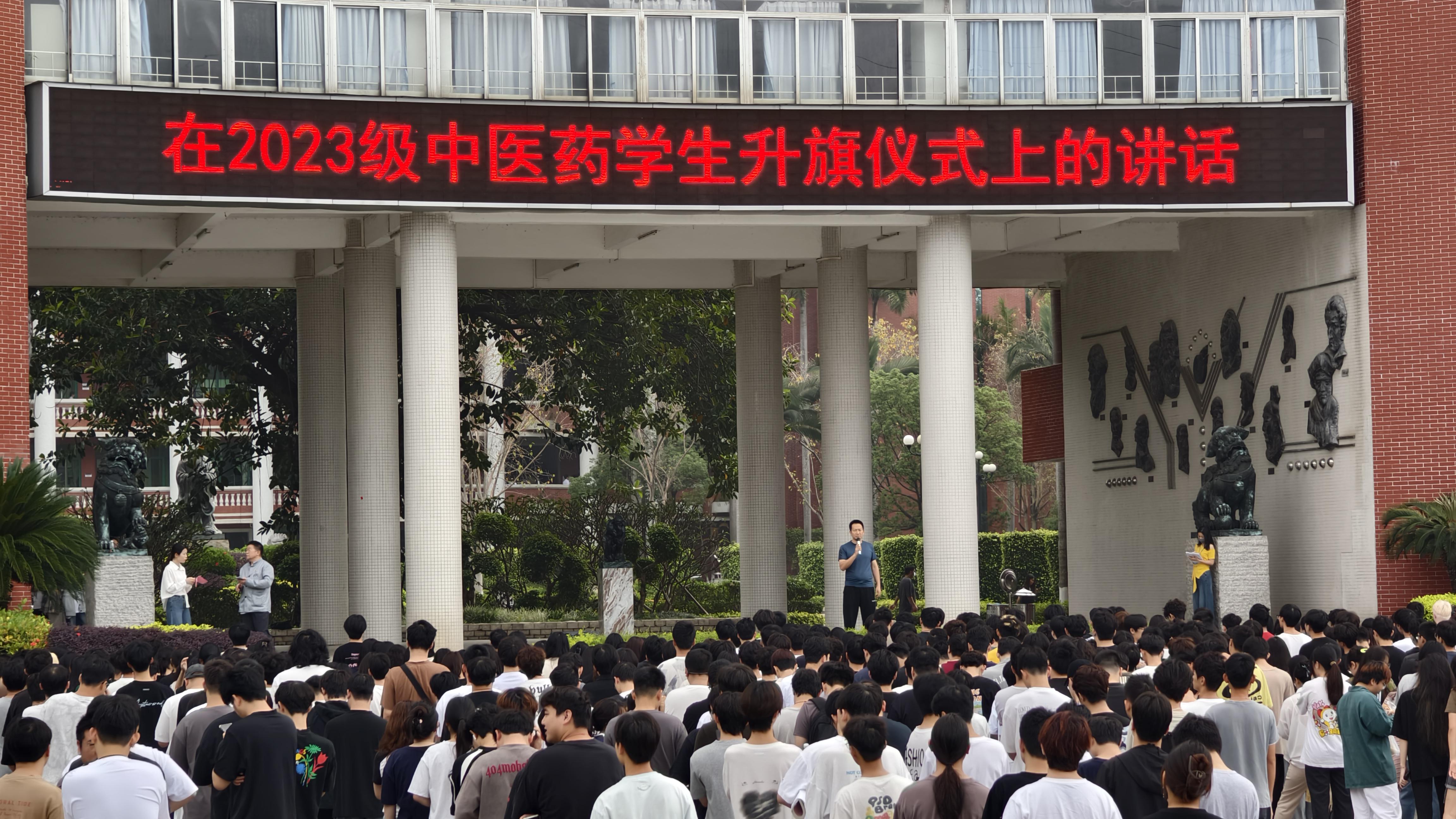 為弘揚(yáng)中醫(yī)藥文化,激勵(lì)師生傳承醫(yī)者仁心,中醫(yī)藥學(xué)院于2025年4月28日清晨在西校區(qū)綜合樓前隆重舉行“傳承岐黃薪火,踐行大醫(yī)精誠(chéng)”主題升旗儀式。學(xué)院領(lǐng)導(dǎo)、輔導(dǎo)員及23級(jí)全體學(xué)生共同參加活動(dòng)。