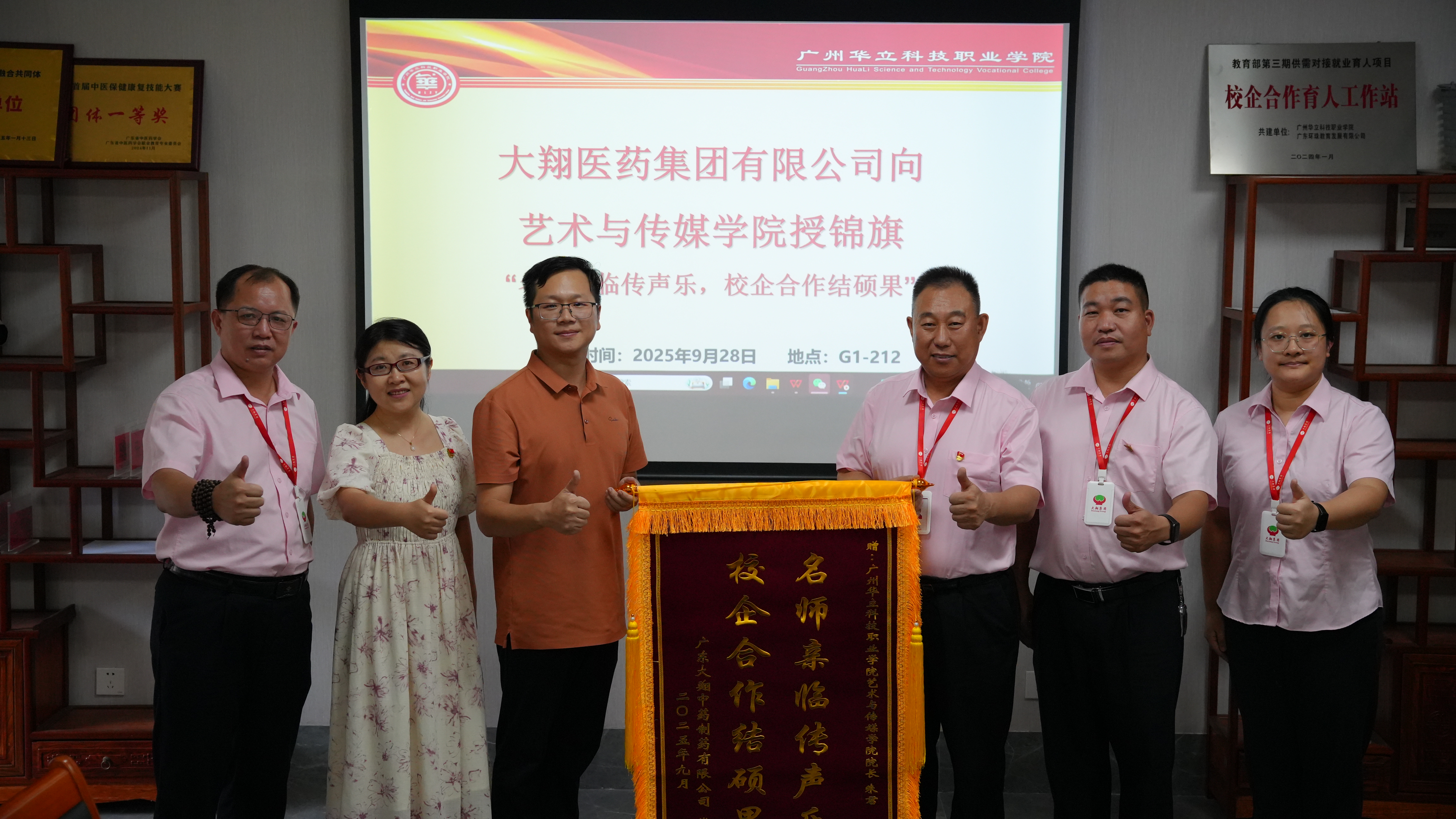 9月28日,廣東大翔中藥制藥有限公司多位領(lǐng)導(dǎo)一行專程到訪我校,就此前與我校中醫(yī)藥學(xué)院、藝術(shù)與傳媒學(xué)院達成的校企合作成果進行回訪交流,并舉行贈旗儀式,表達對校方在合作中鼎力支持的誠摯謝意。