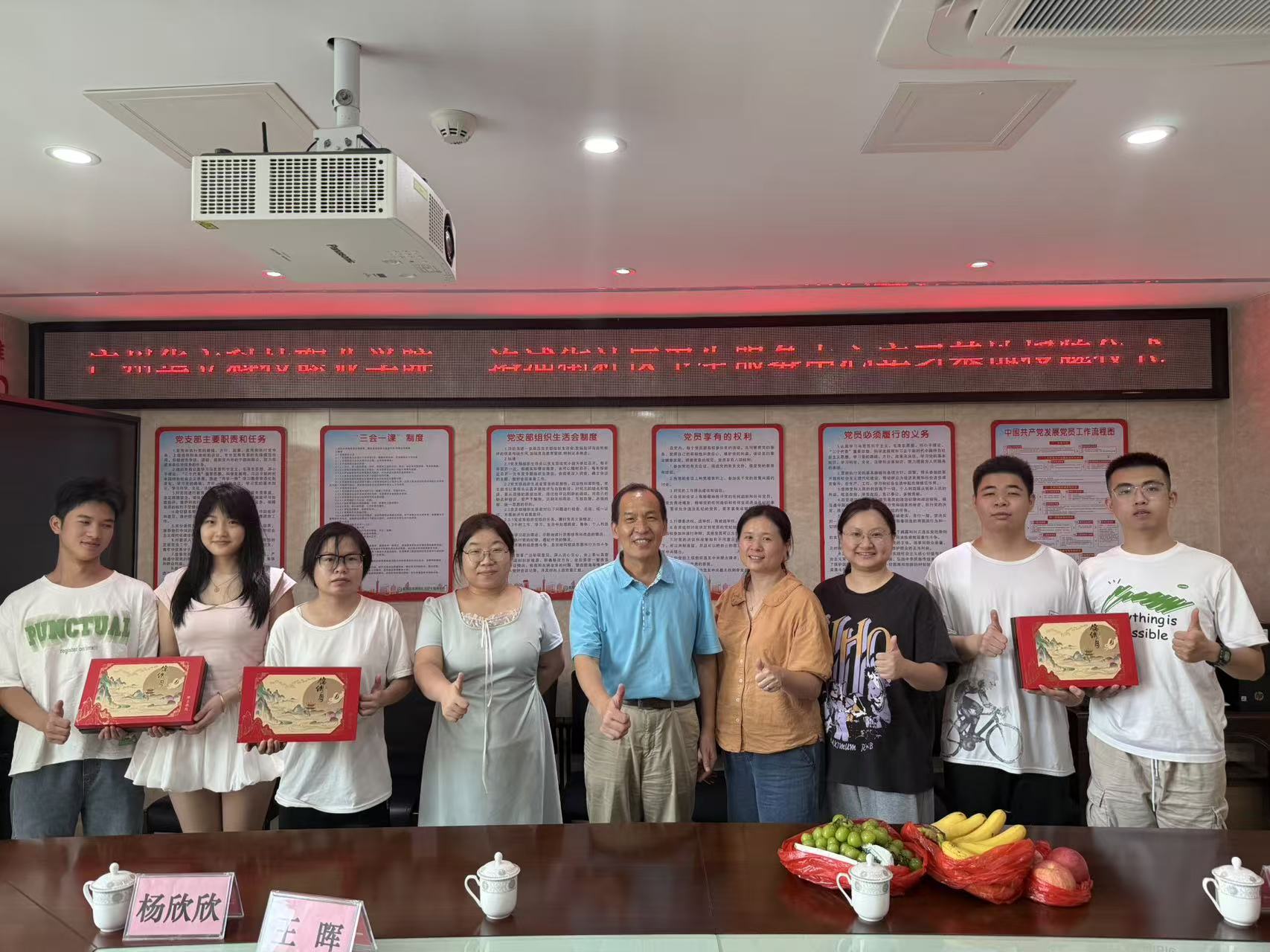 會(huì)后,學(xué)院領(lǐng)導(dǎo)老師們向同學(xué)分發(fā)了中秋慰問(wèn)品,一盒盒月餅和一份份水果,承載著學(xué)校無(wú)微不至的關(guān)愛(ài)。全體人員在會(huì)議室合影留念,畫(huà)面溫馨和諧。此次慰問(wèn),讓在番禺實(shí)習(xí)的學(xué)子們深切感受到了來(lái)自母校大家庭的溫暖,增強(qiáng)了他們的歸屬感和職業(yè)認(rèn)同感。