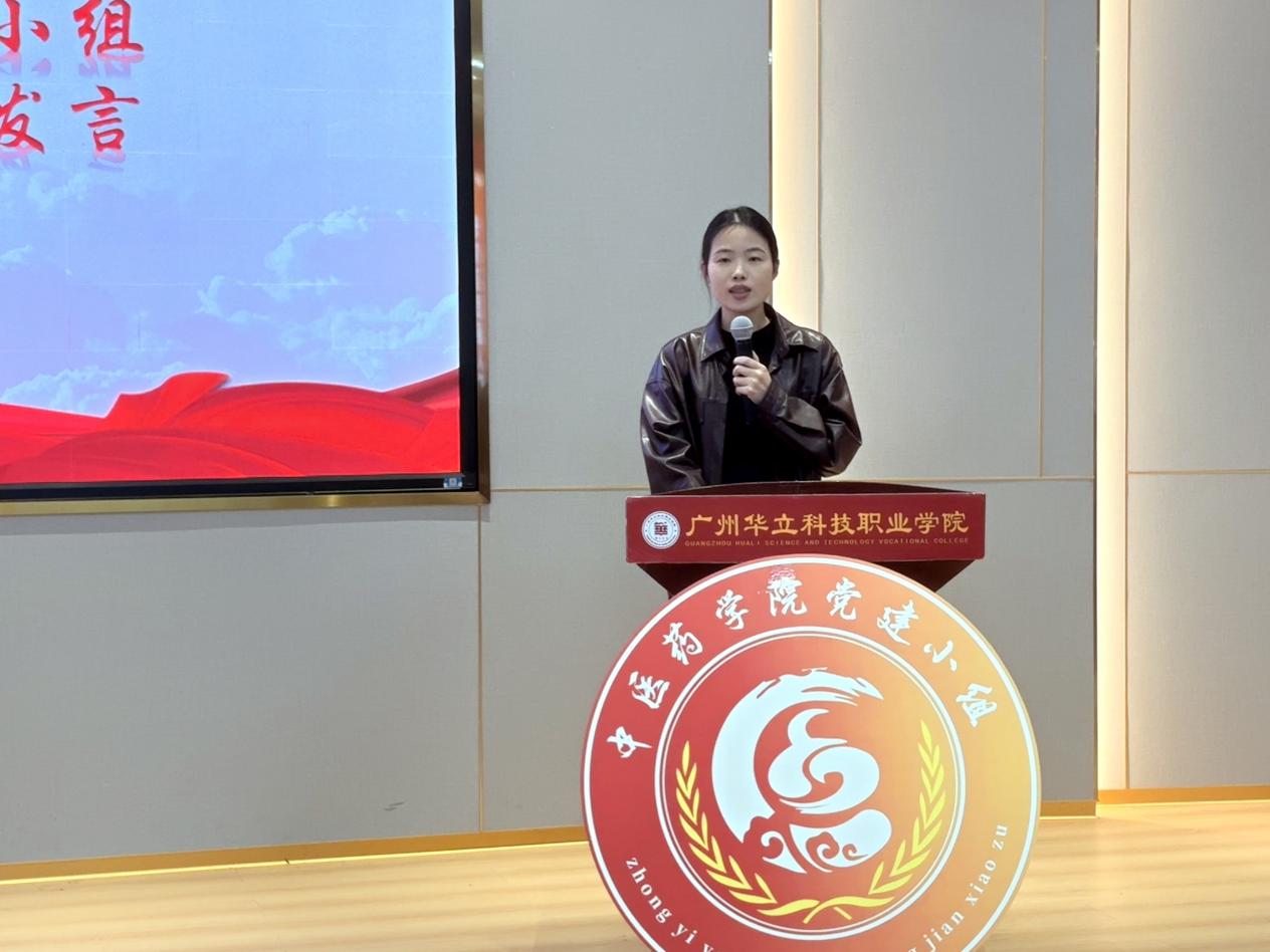 大會伊始,主持人介紹蒞臨領導與嘉賓,全體成員奏唱國歌,拉開大會序幕。黨建小組指導老師曾玉梅首先發(fā)言,在致辭中,她對參會嘉賓及新成員表示歡迎,感謝各方長期以來的支持,并回顧了黨建小組這三年從青澀到成熟的成長歷程。她鼓勵新成員以行動踐行黨建精神,在實踐中成長,既要傳承前輩踏實肯干的作風,也要發(fā)揮創(chuàng)新活力,推動黨建與中醫(yī)藥文化相融共生。