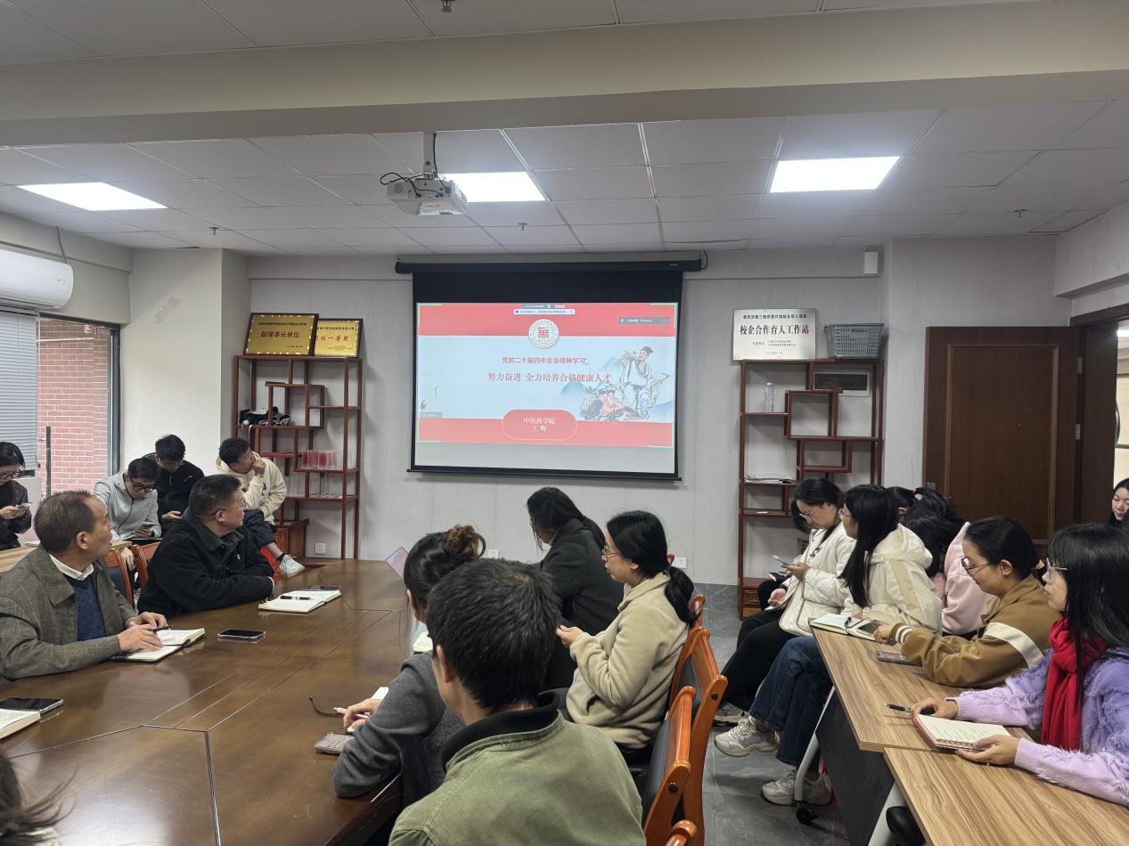 為深入學習貫徹黨的二十屆四中全會精神,扎實落實廣東省“六個一百”宣傳活動部署及學校黨委工作要求,11月19日,中醫(yī)藥學院直屬黨支部在G1-212會議室舉辦專題宣講活動。學院院長王暉以“努力奮進 全力培養(yǎng)合格健康人才”為主題,為全院教職工帶來了一場兼具思想深度與實踐指導意義的精彩宣講,推動全會精神在學院落地生根。
