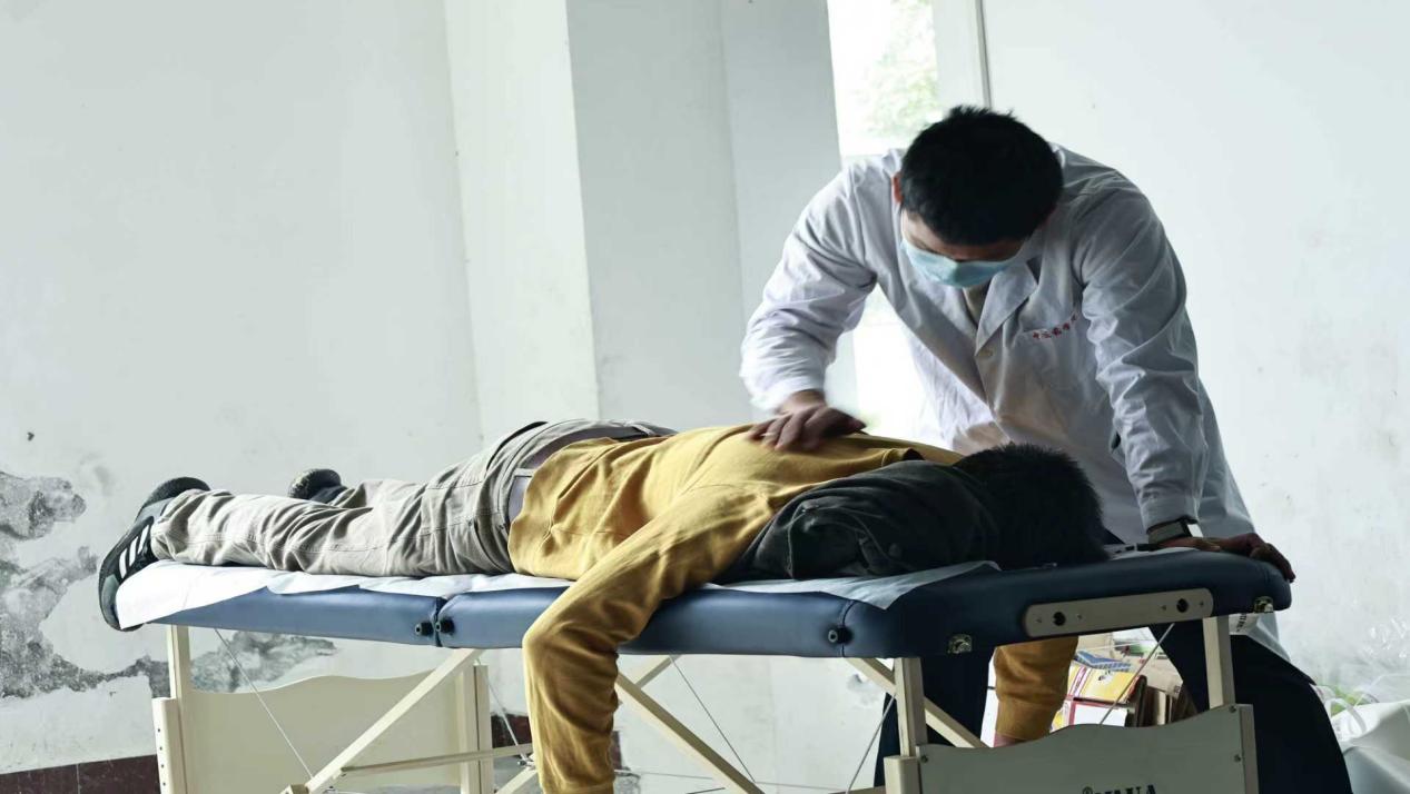 艾灸服務(wù)現(xiàn)場(chǎng),志愿者為長(zhǎng)者進(jìn)行艾灸理療