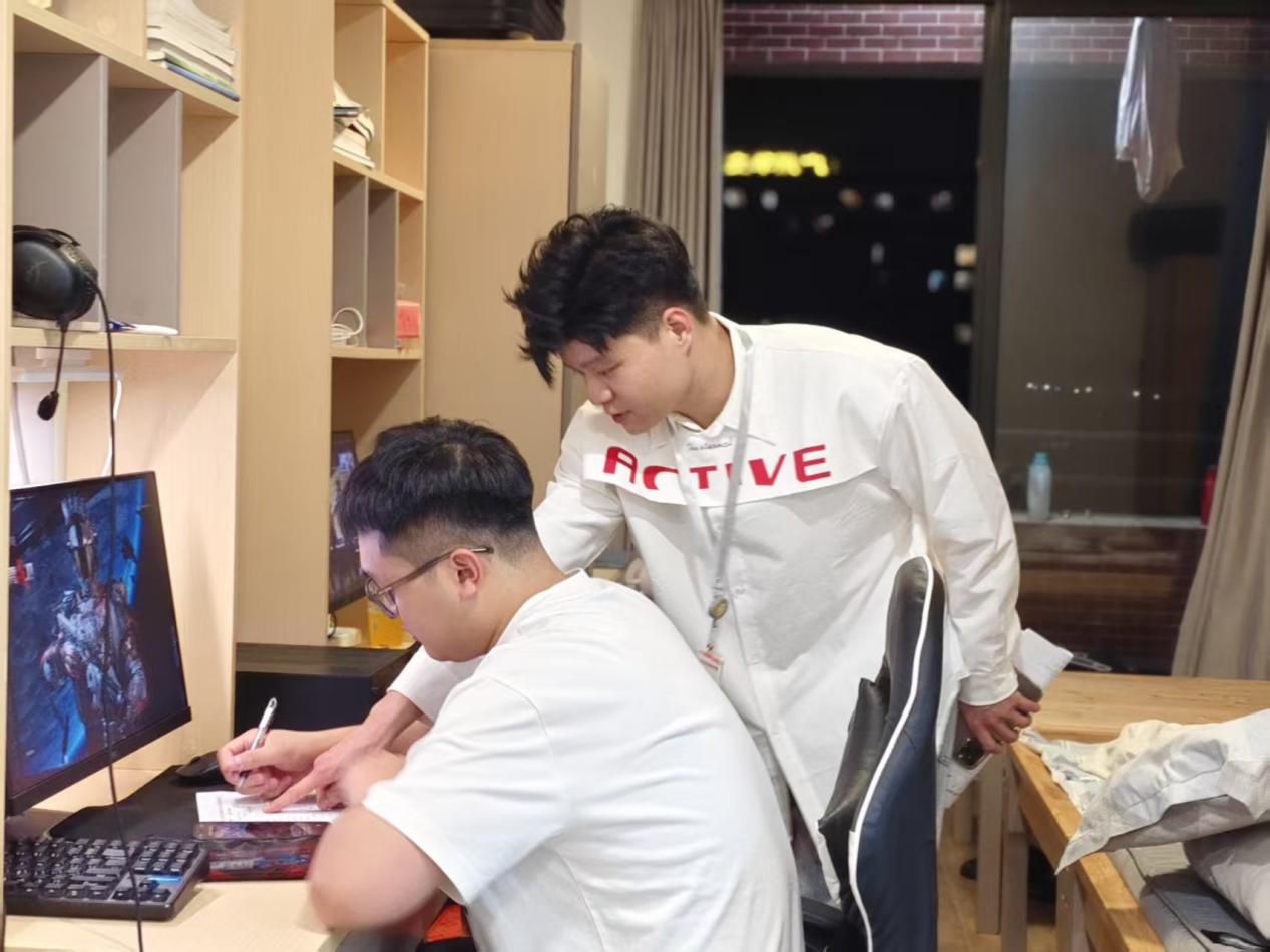 老師正在與同學(xué)交流內(nèi)務(wù)成果