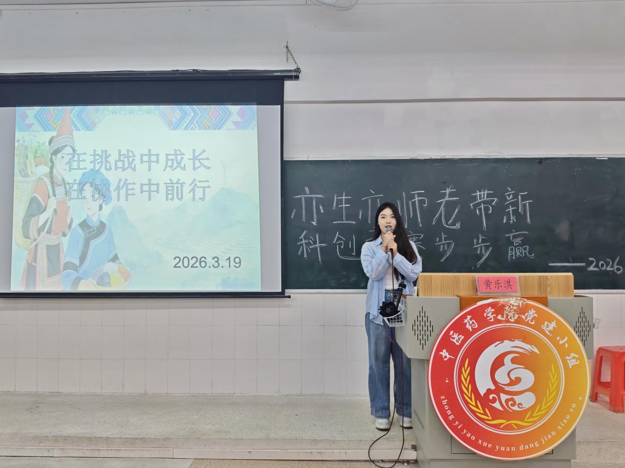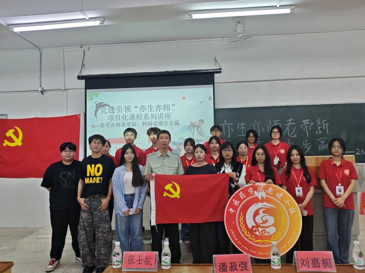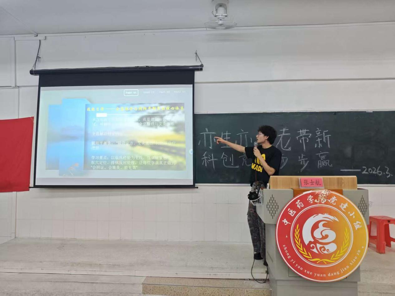 2026年3月19日晚,由中醫(yī)藥學(xué)院直屬黨總支主辦,中醫(yī)藥學(xué)院黨建小組與中醫(yī)藥應(yīng)用研究所協(xié)辦的黨建引領(lǐng)“亦生亦師”項目化課程系列講座第八期在圖書館304教室成功舉行。本次活動以“亦生亦師老帶新,科技創(chuàng)新步步贏”為主題,潘菽弢博士攜手學(xué)生講師張士航、黃樂淇開展分享,學(xué)院曾玉梅、劉嘉楣老師出席講座,24、25級學(xué)生共同參與。活動圍繞科創(chuàng)競賽、中醫(yī)技術(shù)傳承、團(tuán)隊協(xié)作、學(xué)生成長等方面開展,旨在以老帶新培育學(xué)生講師,創(chuàng)建創(chuàng)新創(chuàng)業(yè)團(tuán)隊,夯實中醫(yī)藥傳承與科創(chuàng)實力。