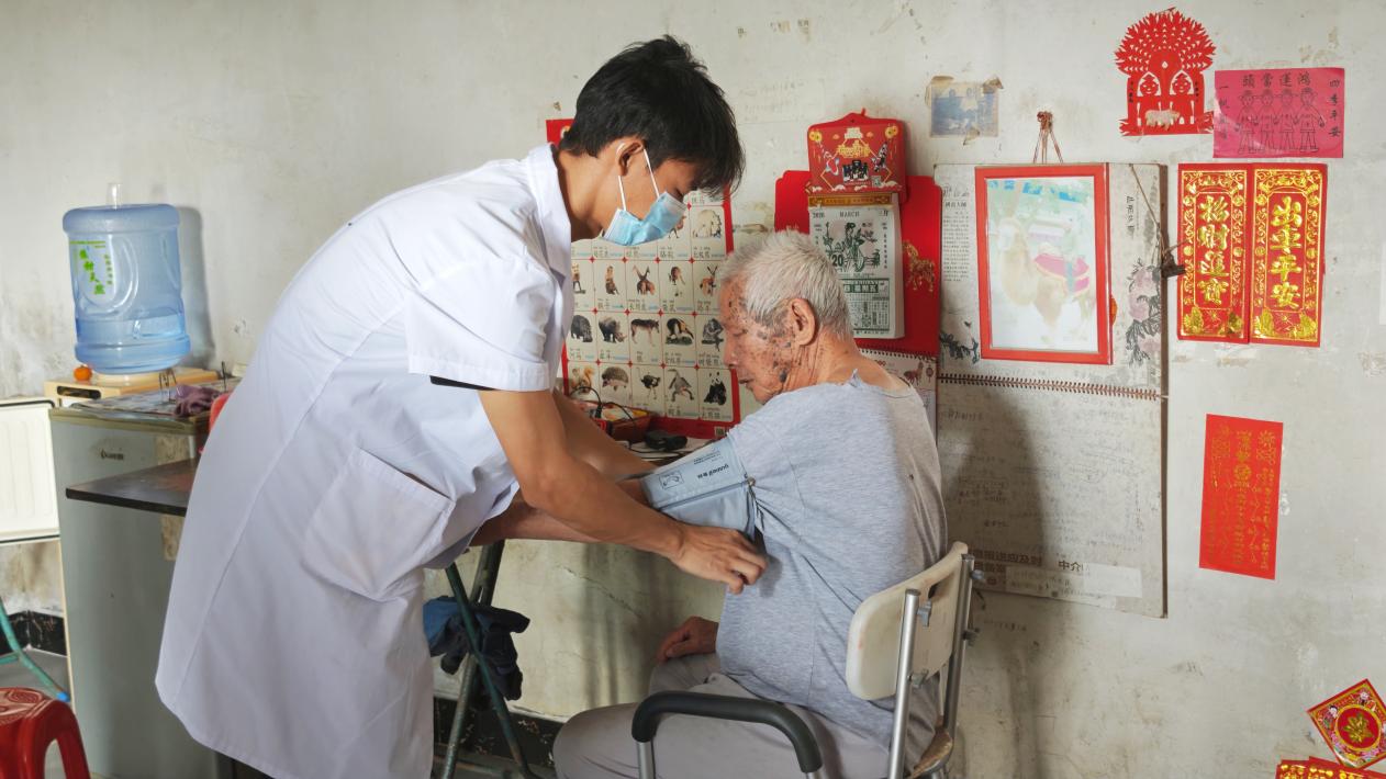志愿者進(jìn)入到居民家中為其測(cè)量血壓