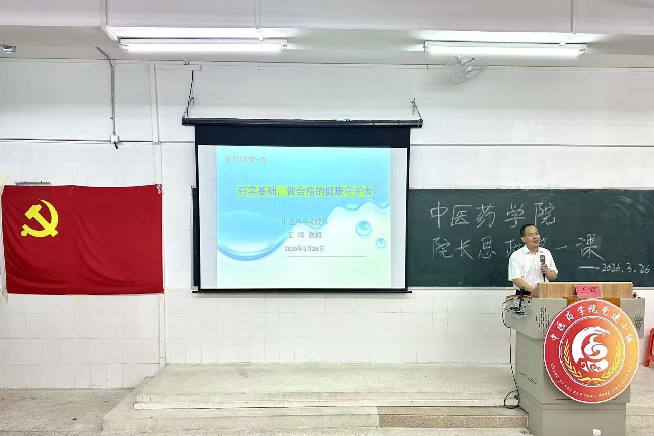 為深入貫徹黨的二十大及二十屆四中全會精神,落實“健康優(yōu)先發(fā)展戰(zhàn)略”,2026年3月26日中醫(yī)藥學院院長王暉教授以“夯實基礎(chǔ),做合格的健康守護者”為主題,在圖書館304教室為學院師生開講新學期思政第一課。課程緊密圍繞國家衛(wèi)生健康工作方針,深度結(jié)合中醫(yī)藥特色優(yōu)勢,引導青年學子堅定專業(yè)信念、筑牢專業(yè)根基、厚植為民情懷,立志成為新時代人民健康的忠誠守護者。