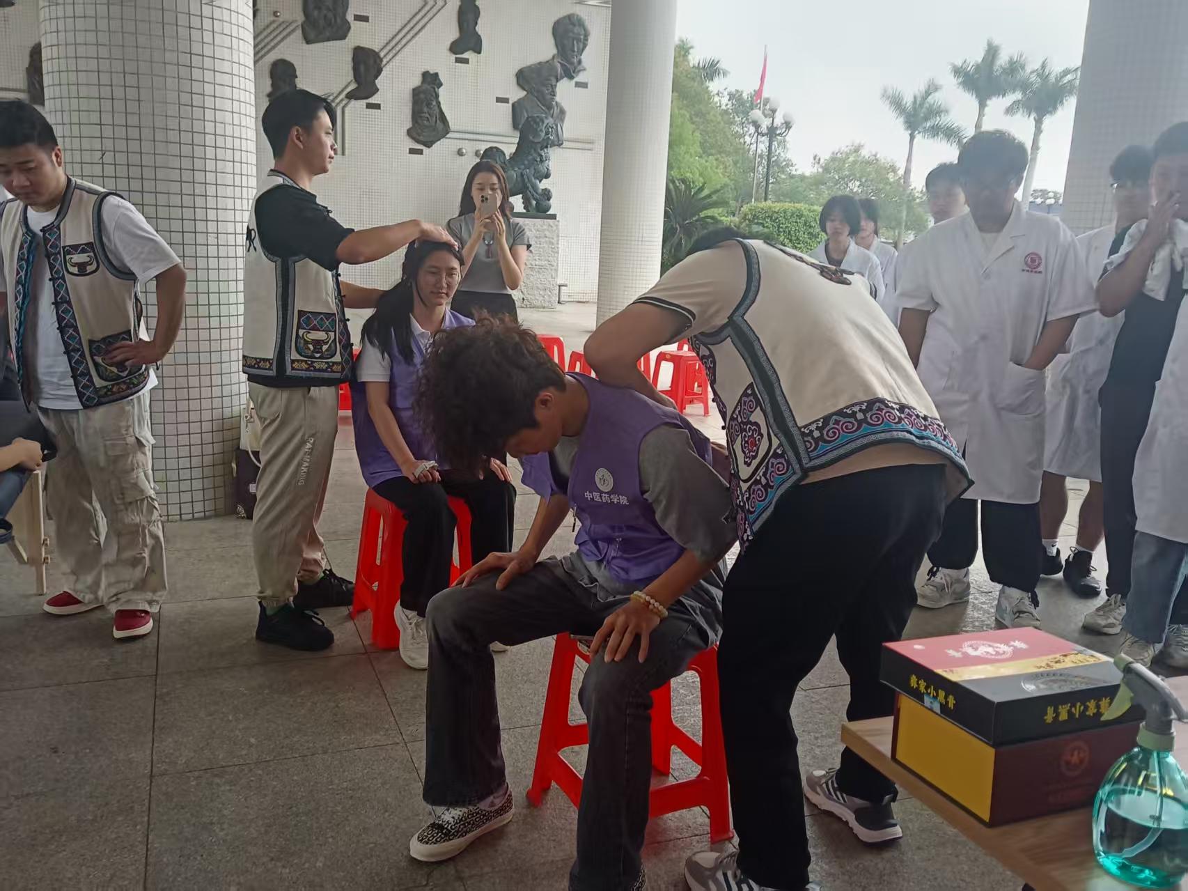 中醫(yī)藥學(xué)院的學(xué)生志愿者們?nèi)虆f(xié)助開展義診服務(wù),近距離觀摩學(xué)習(xí)非遺技藝的實操流程,在實踐中感受傳統(tǒng)醫(yī)藥的實操魅力,將理論知識與臨床實踐相結(jié)合,進(jìn)一步夯實專業(yè)基礎(chǔ),提升實操能力與服務(wù)意識。