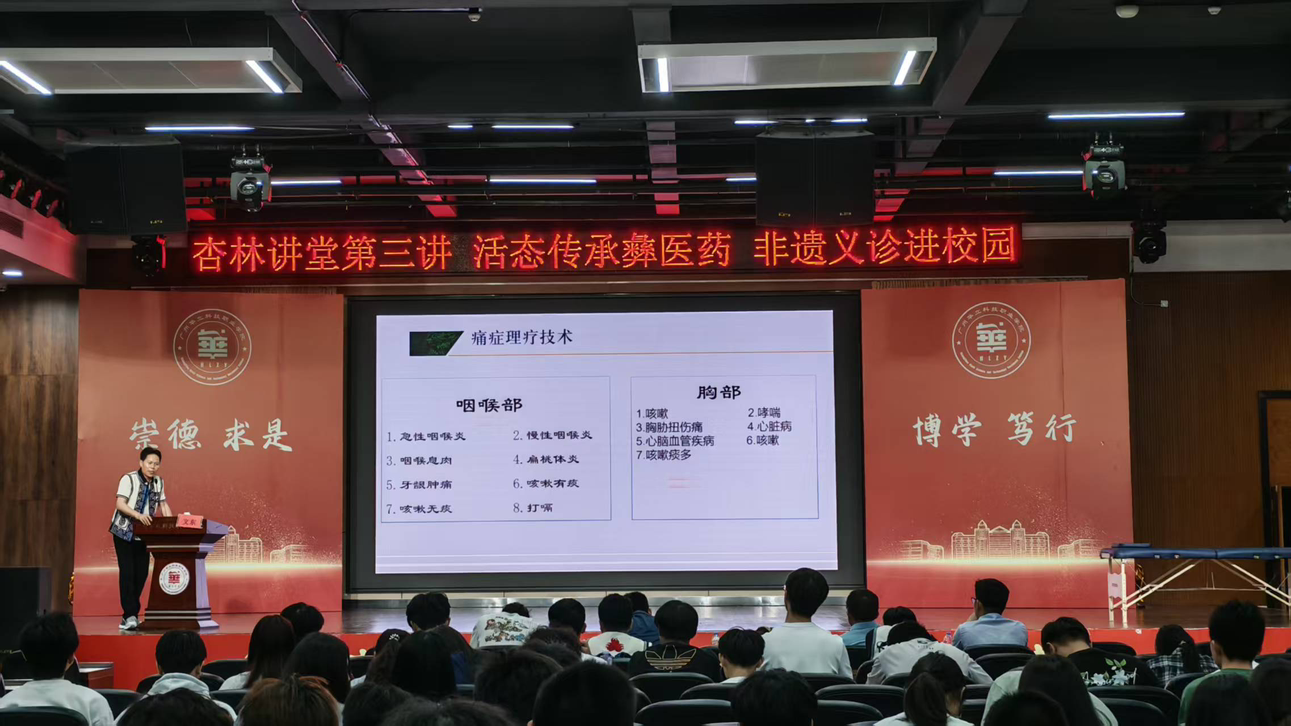講座現(xiàn)場,文東醫(yī)師圍繞彝醫(yī)藥文化起源、基礎(chǔ)理論及特色診療技術(shù)展開講解,系統(tǒng)介紹了彝醫(yī)“魯素炁能”理論體系,闡釋了彝醫(yī)藥與節(jié)氣、經(jīng)絡(luò)、體質(zhì)調(diào)理的內(nèi)在聯(lián)系。他重點分享了彝醫(yī)特色飛針療法的原理與應(yīng)用,用通俗易懂的語言講解飛針在疏通經(jīng)絡(luò)、緩解疼痛、調(diào)理常見亞健康問題中的獨特優(yōu)勢,讓在場師生對古老而神奇的彝醫(yī)藥有了更直觀、更深入的認(rèn)識。
